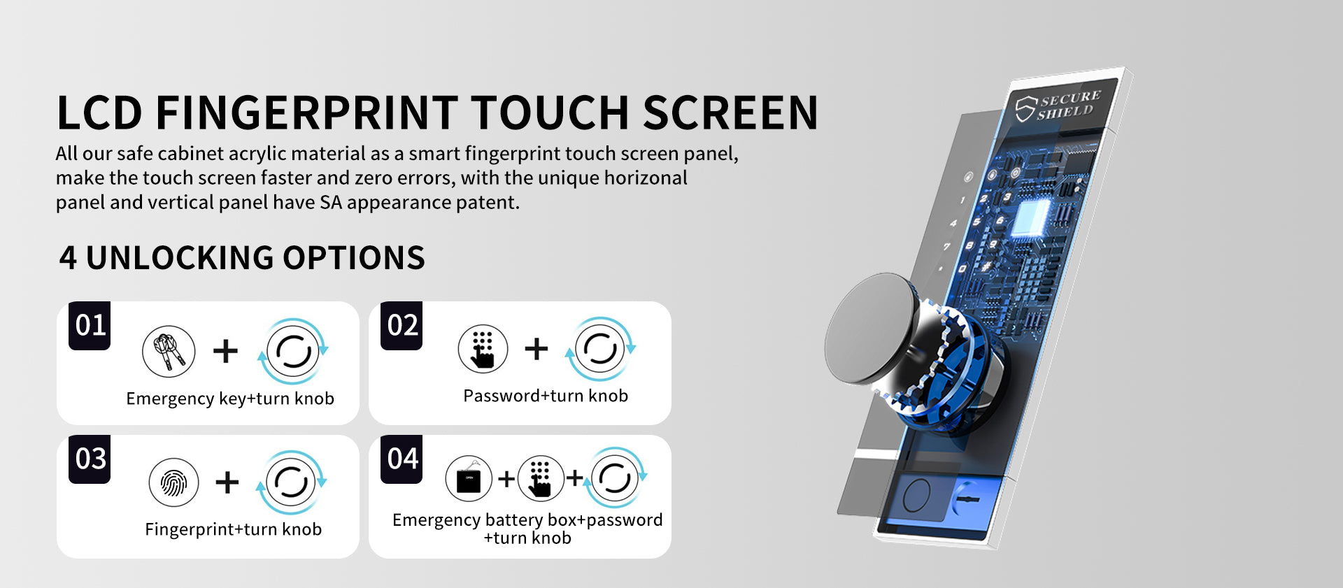 22cm High Safe Box Fingerprint Safety Box Horizontal LCD Touch Screen - Matte Black